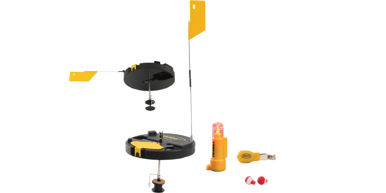 Everything you need for ice fishing success is right here. This complete combo pack includes a depth finder, line markers, 50 yards of line and Frabill’s Lil Shiner™ tip-up light.
