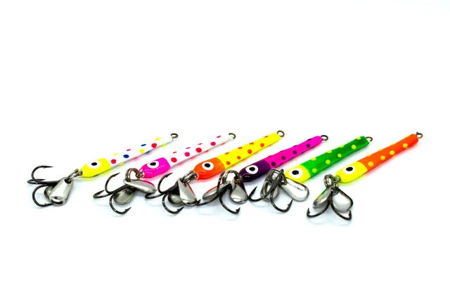Slab Seeker Spoon – The Slab Seeker Spoon is the jigging spoon for both finicky and aggressive fish! The small flicker blades create a light jigging action that even the finickiest fish can’t resist. On aggressive fish, jig it aggressively for a great tail dancing action. Sizes 1″-1/16oz, 1¼”-3/32oz.